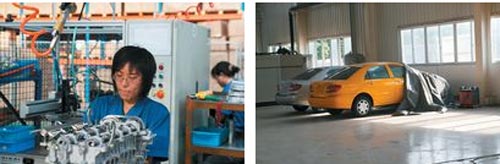 发动机总装车间看起来更干净。有意思的是,我们在工厂的一角发现了吉利模仿的丰田车