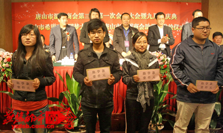 昨日上午,由唐山市希望工程办公室联合唐山市温州商会举办的“唐山市温州商会九周年庆典暨唐山市希望工程圆梦大学行动助学金发放仪式”在唐山锦江国际饭店举行。唐山市温州商会此次出资5万元,资助来自唐山市各高校的50名贫困学生。