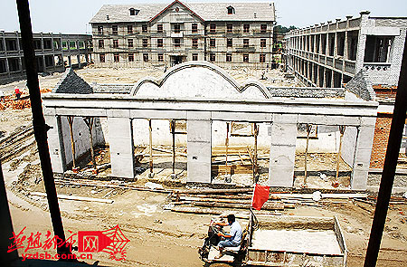 日前,在唐山市南湖公园的《唐山大地震》影视基地内,建设工人正在紧张施工,为28日开机的电影《唐山大地震》作准备。据了解,在冯小刚导演的新片《唐山大地震》中,该影视基地是影片外景拍摄的主要场地,总建筑面积1.3万多平方米,建成后将再现上世纪70年代的民居、电影院、学校、菜市场、职工医院、办公楼、邮电局、理发店、饭馆、文具店、百货公司等场景。 张志军张啸龙摄