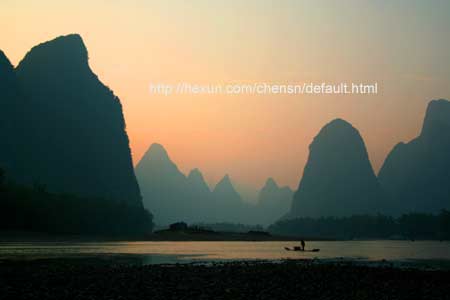 大半夜的,又阴冷阴冷的,我干脆就呆在火车站不出来了,然后五点左右,天灰蒙蒙的,还没有亮就有车开往阳朔了,我赶紧跑上车,很暖和哦,然后就睡着了,醒来的时候差不多已经到阳朔了,7点,慵懒的阳朔县城还没有苏醒过来,天空还漂着细雨,感觉像沉睡的婴孩,让人不忍吵醒,轻声细语的。