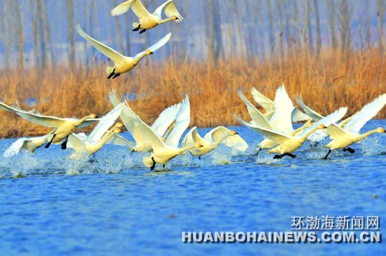 近日,唐海县十一农场境内8700亩的落潮湾水库迎来百余只珍稀白天鹅落脚觅食,与它们相伴的还有白鹤、黑嘴鸥等多种珍稀鸟类,吸引了许多摄影爱好者前来拍照。常学东 李将采 摄