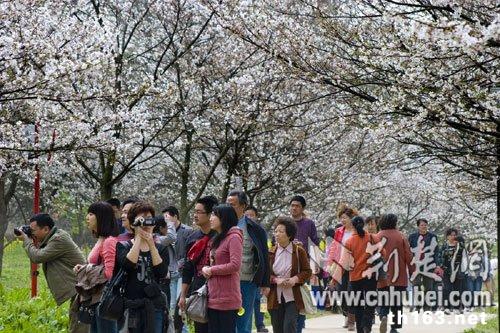 适逢双休日,武大校园内的樱花盛开,慕名而来的观花者人流如潮。新华社