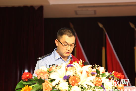 十佳杰出青年代表唐海县公安局李八廒派出所副所长桂银杰发言。 郑永春 摄