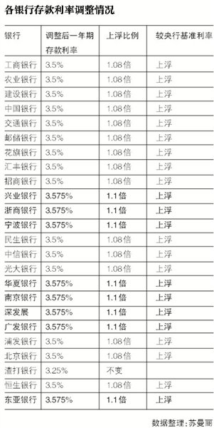 此外,还有宁波银行、南京银行等城商行和农商行宣布各类存款利率统一按照基准利率上浮10%的标准执行。