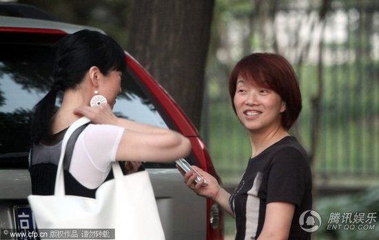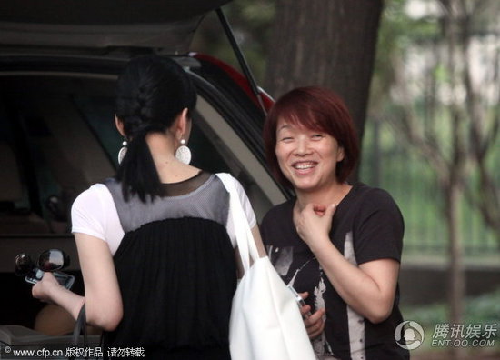 腾讯娱乐讯(CFP/图文)北京,近日,在北京丽都附近记者撞见昔日著名女歌手陈明。当天陈明吃过午餐正要开车离去,但在马路上遇见好友,二人在车后热聊。陈明素颜完全没有往日巨星风采,黑T牛仔裤人字拖不施任何粉黛,完全一副家庭主妇模样。从两人指指点点对方鼻子和嘴唇部位不难看出二人在讨论肌肤状态。女友人甚至还扒开陈明衣领,摸其肩膀看脖子和后颈处,陈明被弄得瘙痒难耐大笑不止。因有其他顾客要泊车,停车管理员上前催促并询问是否离开,无奈陈明和女伴结束交谈驾车离开。