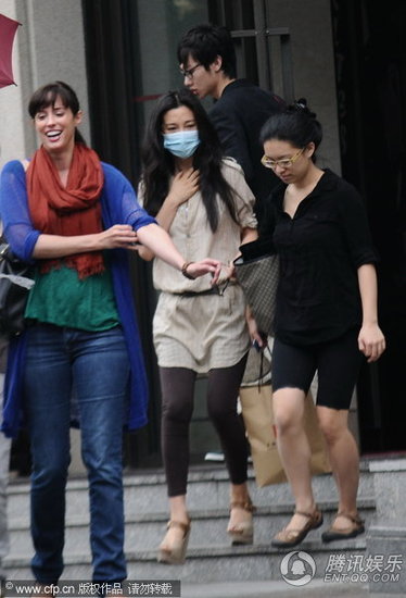 腾讯娱乐讯上海,近日李冰冰与导演张扬等人离开酒店。李冰冰戴着口罩走在人群最后面,由于天空突然飘起小雨,走在最前面的工作人员打起雨伞。在身旁的外籍评委以为是帮他们撑伞,却见工作人员往后走到李冰冰身边打起伞,纷纷回头显得很无奈。走到影院门口等电梯时,李冰冰突然金鸡独立晾起鞋底,手还拉着张扬的衣服。张扬还用手在李冰冰鞋子处,然后与李冰冰比划什么。