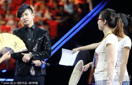 欧弟录制节目显大牌 五人为其伺候扇风