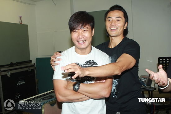 钱嘉乐探班郑伊健演唱会彩排