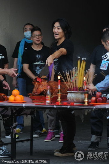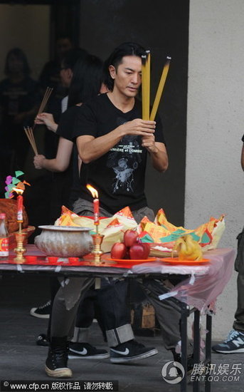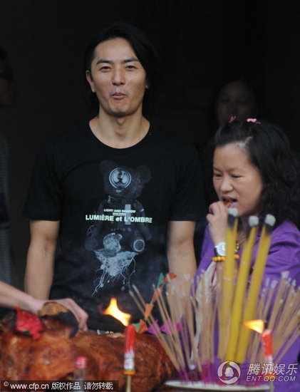 腾讯娱乐讯日前,郑伊健为演唱会进行拜神仪式。结束了一连四场演唱会之后采访宣布明年将会与女友蒙嘉慧结婚,在演唱会之前的拜神仪式上郑伊健喜笑颜开意气风发。