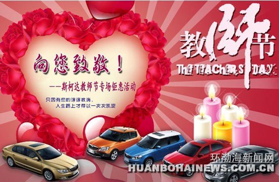 在这个收获的季节我们再一次迎来了期盼已久的教师节。唐山宝通斯柯达为回馈广大教师团体5年来对我们的支持与厚爱,定于9月15日举行大型馈赠活动。凡是活动当天进店客户均可获赠原厂精美礼品一份,持教师证进店购车更享现金优惠。机会难得,欢迎广大爱车的教师朋友进店选购。