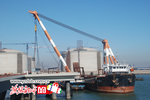 唐山液化天然气项目码头工程自2011年12月5号开工,预计2013年3月31号完工。码头总长度410米,采用“蝶”型墩台式布置型式。栈桥全长1899米,桥体采用装配式预应力混凝土简支箱形梁结构,标准单跨为55米。预制、安装箱梁132件,其中55米长的120件,31米长的8件,24米长的4件,最重420吨。 据了解,该工程是适应国家战略发展需要而投资建设的一项重点工程,项目建成后,将为华北地区增加一个新的可靠供气气源,对于充分发挥唐山区位优势,加快建立完整的液化天然气产业链,推动地方经济社会发展都具有十分重要的意义。