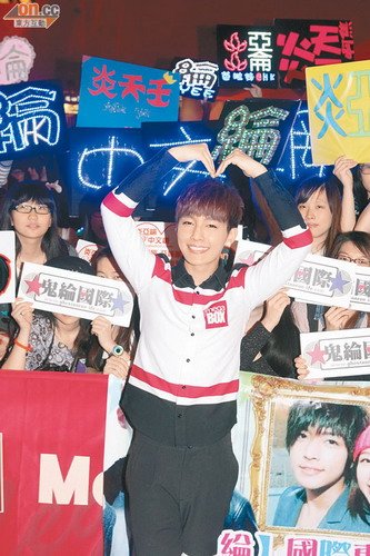 腾讯娱乐讯2012年11月27日香港飞轮海成员炎亚纶(Aaron)前晚单飞出席商场圣诞活动,现场的粉丝多到几乎“塞爆”整个商场,手持名牌及海报的“炎粉”一见炎亚纶出场,就不断疯狂尖叫!会做的炎亚纶向一众歌迷挥手兼大派飞吻,同时用广东话说出“我好挂念你啊!”。他又跟粉丝们大玩游戏,并唱出两首新曲,哄得现场的“炎粉”晕头转向!一群芭蕾舞女孩与炎亚纶互动演出,炎亚纶更左拥右抱,并获女孩送吻。