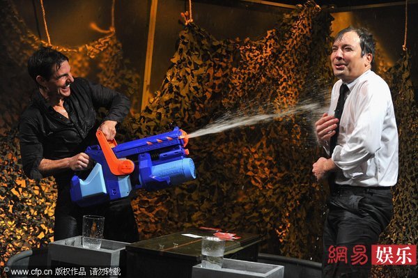 汤姆克鲁斯与主持人互泼水 阿汤哥变“落汤鸡”