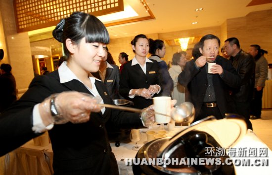 来宾品尝胭脂米做的腊八粥 记者 付卫峥 摄