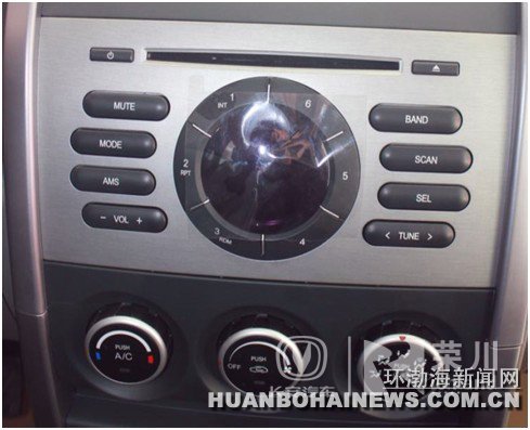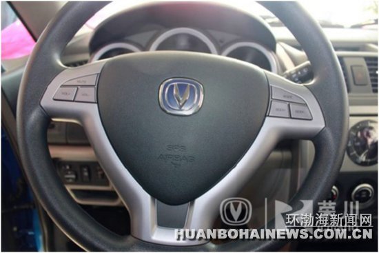 长安CX20的方向盘造型采用了很常见的三幅式设计,配以哑光银色装饰面板的装点,令方向盘顿时增添了一丝生气。方向盘左右两侧均配备了多功能按键,可直接控制音量大小。