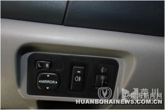 方向盘左侧的多功能控制区配备了三项十分常用的功能控制,最左侧为后视镜调节按键,居中的为雾灯开关,最右侧为大灯高度调节按键。