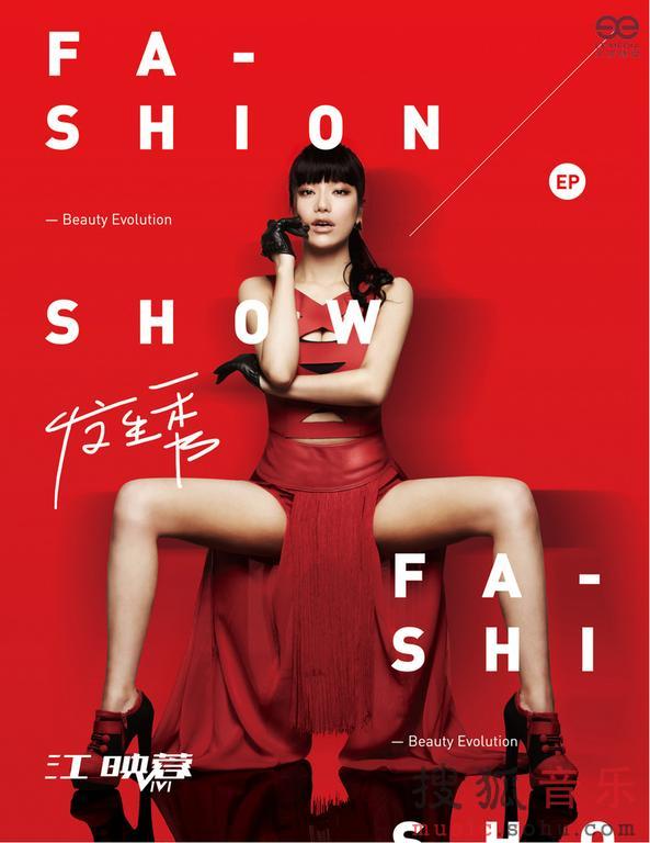 这组封面照片中的造型与前一组宣传照相似的是,同样的红色长裙,彰显出江映蓉的自然和奔放。而不同的姿势动作,却展现出另一番韵味。迷离诱人的眼神和性感霸气的动作,让人不得不佩服她在镜头下的表现力。而封面的大红背景,也正如江映蓉给人的感觉,奔放性感却又热情似火。唱片名中英文的和谐搭配展示出洋味色彩却又不失“中国风”的调性。而“Fashion Show”音译而来“发生秀”的创意不禁给人留下了深刻印象,趣味十足。