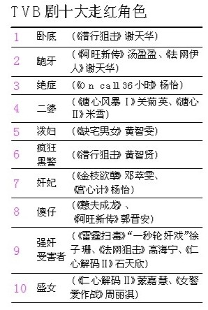 TVB十大走红角色