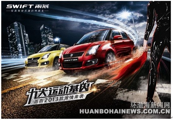 消费者期待已久的长安铃木雨燕2013款携“九大运动基因“激情来袭,将于3月30日在唐山地区(荣川唐山京津长安铃木4S店)正式上市。届时会有200余名媒体、客户、行业嘉宾共同见证这一辉煌的时刻,我们有精彩的节目表演,趣味的互动,以多样的形式将活动推向高潮,共同庆祝长安铃木汽车2013年首款战略车型诞生。