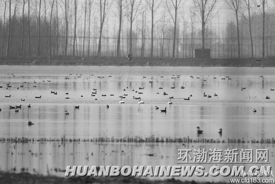 随着生态环境的逐步改善,每年的3、4月份,在曹妃甸区三农场的大水泡田解冻期,都有大批的野生鸟类来到这里小憩后再往北方迁移。