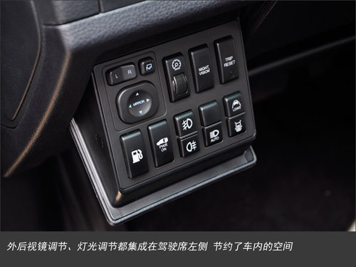 东风裕隆纳智捷大7MPV采用的多功能方向盘由黑色真皮材质包裹,手握的感觉非常不错,不过在面积并不大的区域里却集成了定速巡航、蓝牙和音响控制等按键。在驾驶席左侧区域设计有外后视镜调节、灯光调节等按键,有效的节约了车内的空间。
