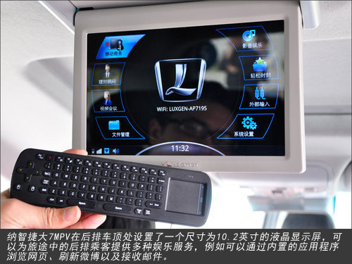 纳智捷大7 MPV的“无缝智慧系统”是一部车载Android系统的计算机服务器,内置双SIM卡以及多款定制软件,将拥有移动上网、移动办公、Office文件浏览等全方位的商务功能,这些功能对于商务人士来说非常重要。从功能性而言,纳智捷大7 MPV将提供与办公室无异的商务环境,内置的3G网卡可以随时连接WIFI网络,系统还附带了无线键盘,在行驶途中,我们非常顺畅的完成了网页浏览、视频播放等多种功能,并且兼顾了商务需求,日常不够用的时间完全可以在车内被节省出来。。