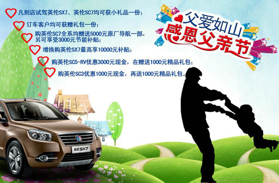 油价重回“7元”时代,车价一降再降,已经探底,在当今房价、物价居高不下的时机之下,油价和车价的双双“落马”无疑为广大车友提供了购车的最好时机。还不出手,更待何时?父爱如山,真情回馈。至此父亲节来临之际,唐山万汇英伦汽车4S店特开展真情回馈季。