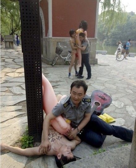 两男子为保护音乐版权北大裸奔遭制服