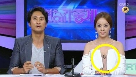 搜狐娱乐讯 据台湾媒体报道,韩国女主播在播报新闻途中的走光事件层出不穷,日前KBS电视台主播朴恩英担任节目主持人,身穿一袭露肩开胸白色上衣,两胸仅各用一片布料遮住,中间虽有肉色布料连接,但看起来就像中空上阵什么都没穿,连一旁的男主持人都亏她:“是天气太热了吗?”