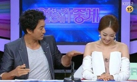 韩国女主播着开胸装主持 男搭档:天太热吗