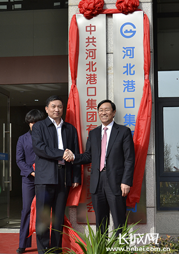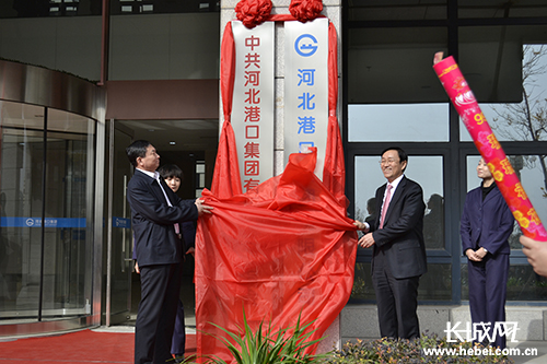 陈学军市长及邢录珍董事长共同为河北港口集团总部揭牌。长城网 肖曼 摄