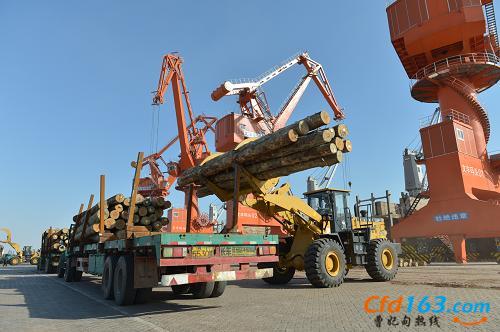 1月20日,曹妃甸港文丰木材码头的工人将木材装车。当日,通过国家开放验收的河北省唐山市曹妃甸港文丰木材码头正式对外开港通航。曹妃甸港按照“全产业链布局、组团式开发”的模式,计划在3年内打造中国北方最大的木材交易平台,届时木材吞吐量将达到800万方,粗加工能力达到500万方,精加工能力达300万方。新华社发(郝晓维 摄)