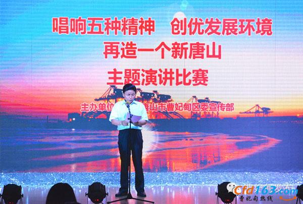 为深入开展“唱响五种精神 创优发展环境 再造一个新唐山”系列活动,全面宣传我区各级各单位特别是一线建设者在弘扬“五种精神”、“再造一个新唐山”的实践中涌现出的先进典型,鼓起“精气神”,凝聚正能量。5月27日,我区在数字影院举行了“唱响五种精神 创优发展环境 再造一个新唐山”主题演讲比赛。区委副书记韩建民出席并致辞,区委常委、政法委书记杨靖山,区委常委、组织部长母树宏,区委常委、宣传部长佟秀媛,区人大常委会副主任周顺增,区政府副区长刘子阳,区政协副主席艾文国等出席了此次活动。