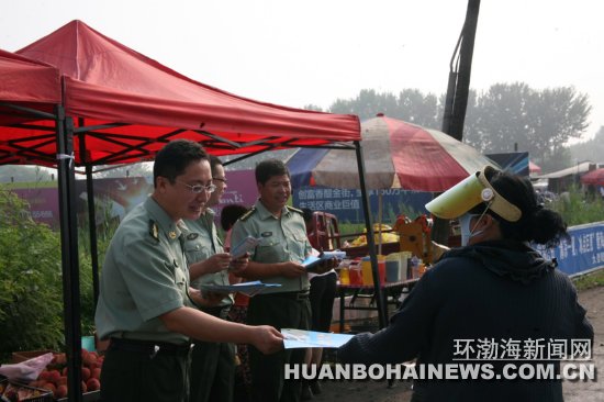 7月17日,正逢曹妃甸主城区大集。曹妃甸区人武部官兵冒着酷暑,在集市上向赶集的群众发放2014年征兵工作宣传资料,吸引了许多群众咨询有关大学生征集条件、办法、流程和优惠政策的问题。