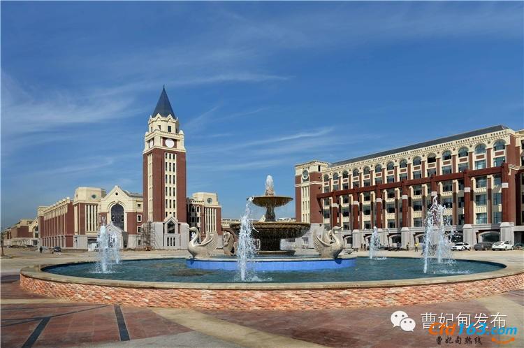 远远的,蔚蓝的天空下,绿树掩映中,一片独具现代化气息的建筑群格外引人注目,俨然一幅美丽的图画:只见一座座楼房错落有致,楼体颜色以暗红和乳黄相间,再加上独具特色的欧式钟楼设计,整体给人的感觉典雅而明快。