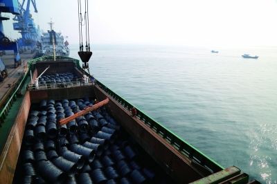 首钢的旁边,就是曹妃甸最大的码头—矿石码头。2005年这个码头开港通航,至今已经与巴西、澳大利亚等42个国家和地区实现直航。对于首钢来说,这个码头太近,也太方便了。矿石码头给人的直观印象就是红红的,那是装卸矿石形成的痕迹。码头工人在工作时带着防尘面具,能有效挡住粉尘。装卸工人安玉琢是唐山乐亭人,他带着淳朴的笑容,让人感受到经岁月洗礼后的乐观。他说他儿子就在对面的首钢工作,有时他们还能一起回老家去。他的女儿家住北京,女婿和我是同行,也在媒体工作,他现在已经当了爷爷。说起这些,安玉琢很自豪。