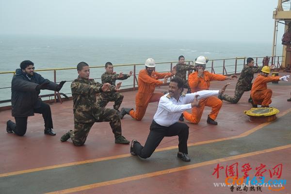 外籍船员们纷纷向边检官兵学习武术。
