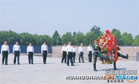 习近平在唐山地震遗址公园向唐山大地震罹难同胞和在抗震救灾中捐躯的英雄敬献花篮。新华社记者 兰红光 摄