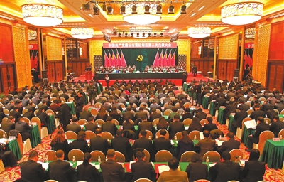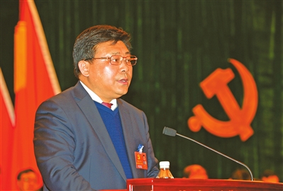 2月17日,区委书记孙贵石在二次党代会上作区委工作报告。 记者 赵勇 摄