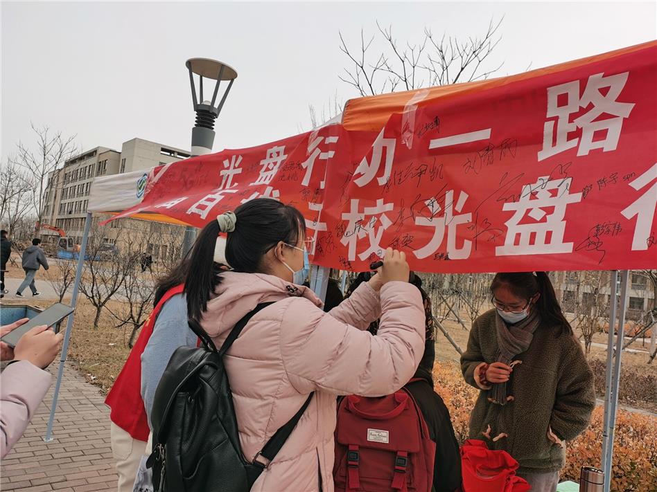 活动期间,志愿者在菊园食堂门口安置帐篷并以张贴海报、派发传单等方式宣传活动,号召同学们参与到活动中来,向同学们普及光盘行动的相关知识及必要性,并引导同学们使用微信小程序“光盘打卡”进行每餐光盘打卡。连续两周,志愿者一直风雨无阻坚持宣传推广光盘行动,现场参与的同学们热烈支持,现场气氛如火如荼。同时,志愿者组织同学们在活动条幅上签名留念,希望同学们能将“勤俭节约,珍惜粮食”的理念贯彻下去。